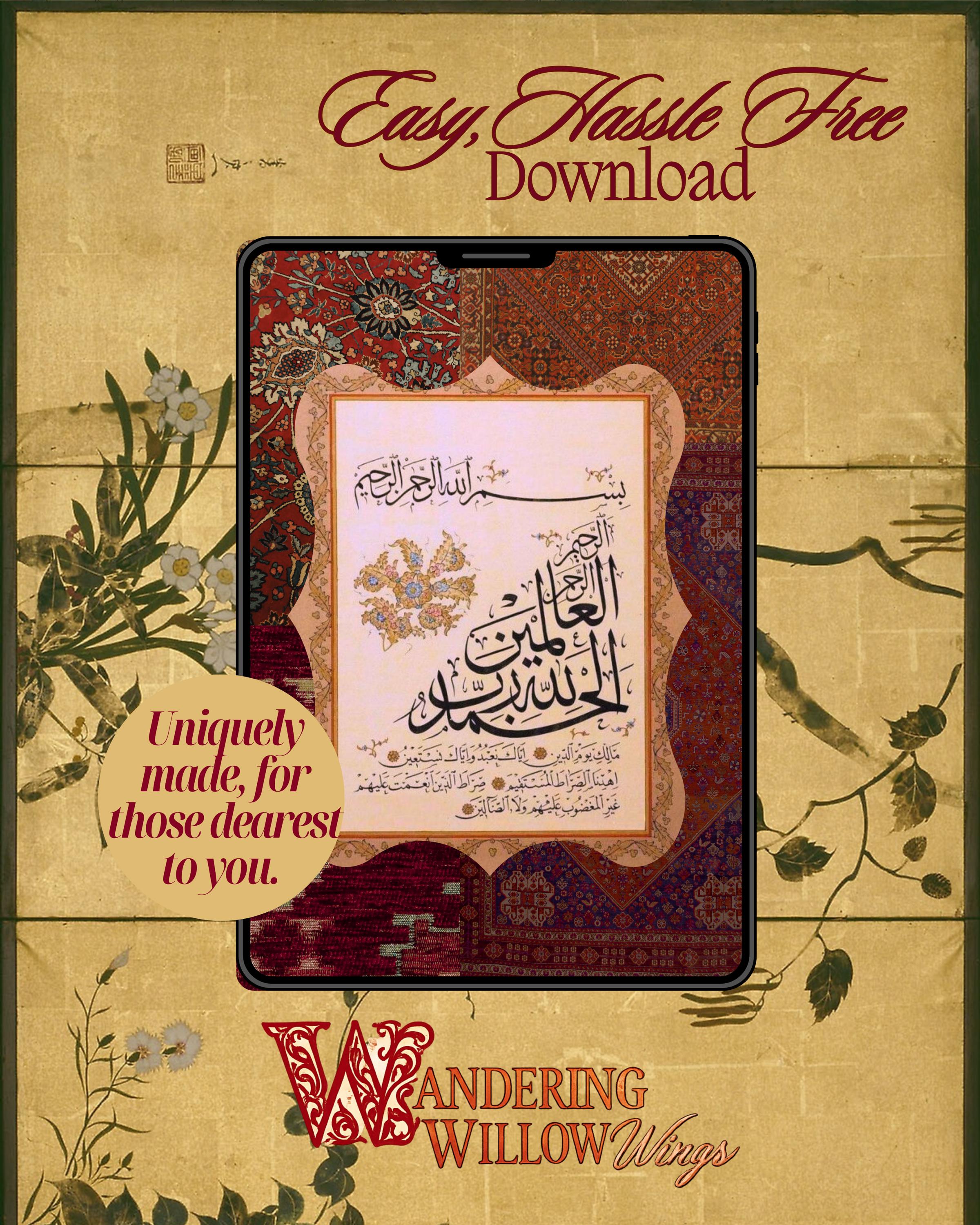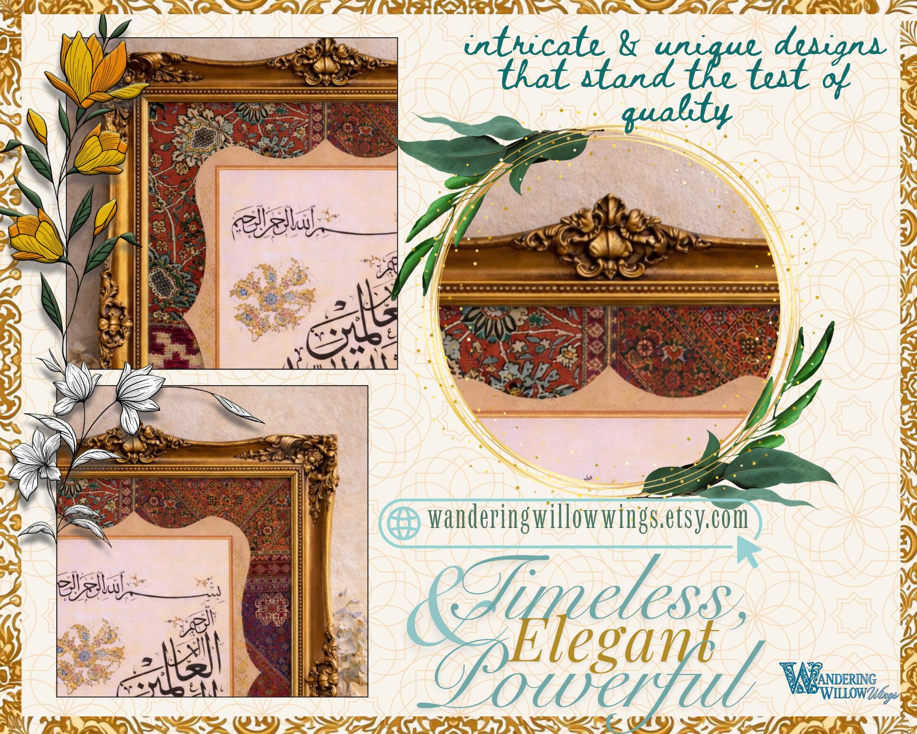This Bismillah Islamic wall art printable blends sacred remembrance with the richness of Persian rug–inspired design. Created for Muslim homes preparing spiritually for Ramadan, to begin strong, and end even stronger - this piece serves as a daily reminder to begin everything in the Name of Allah.