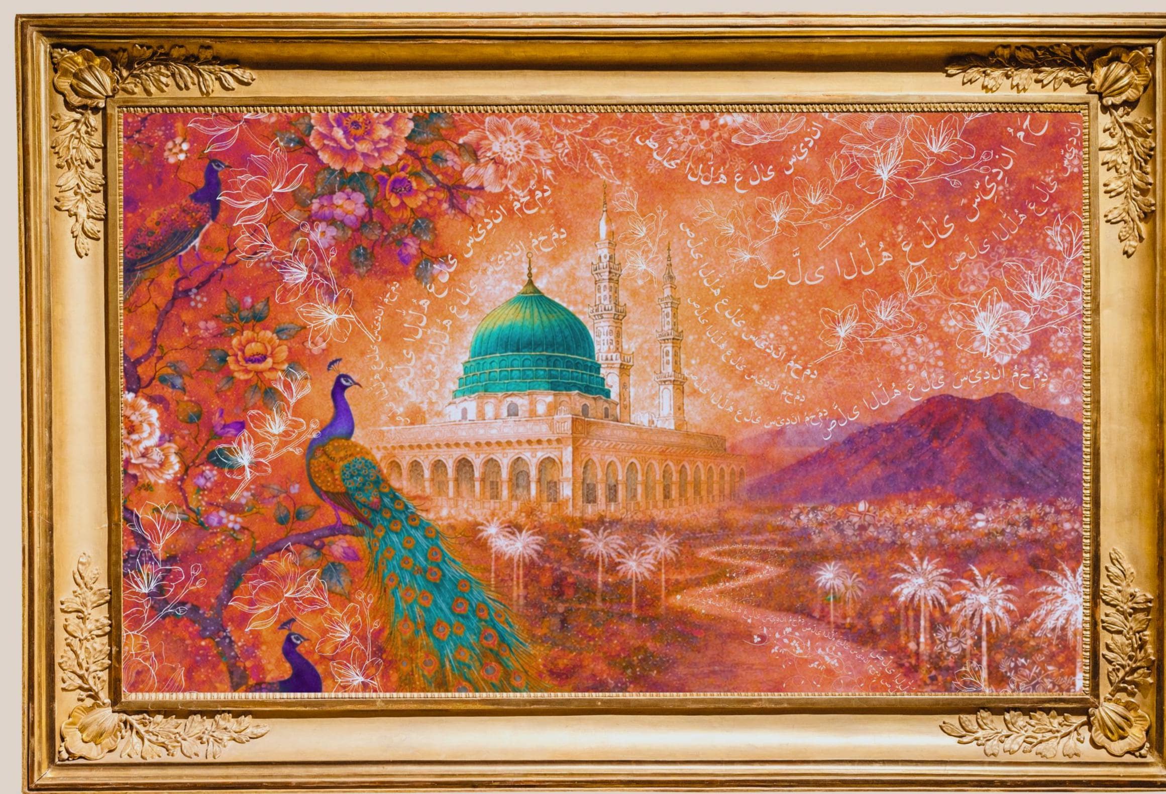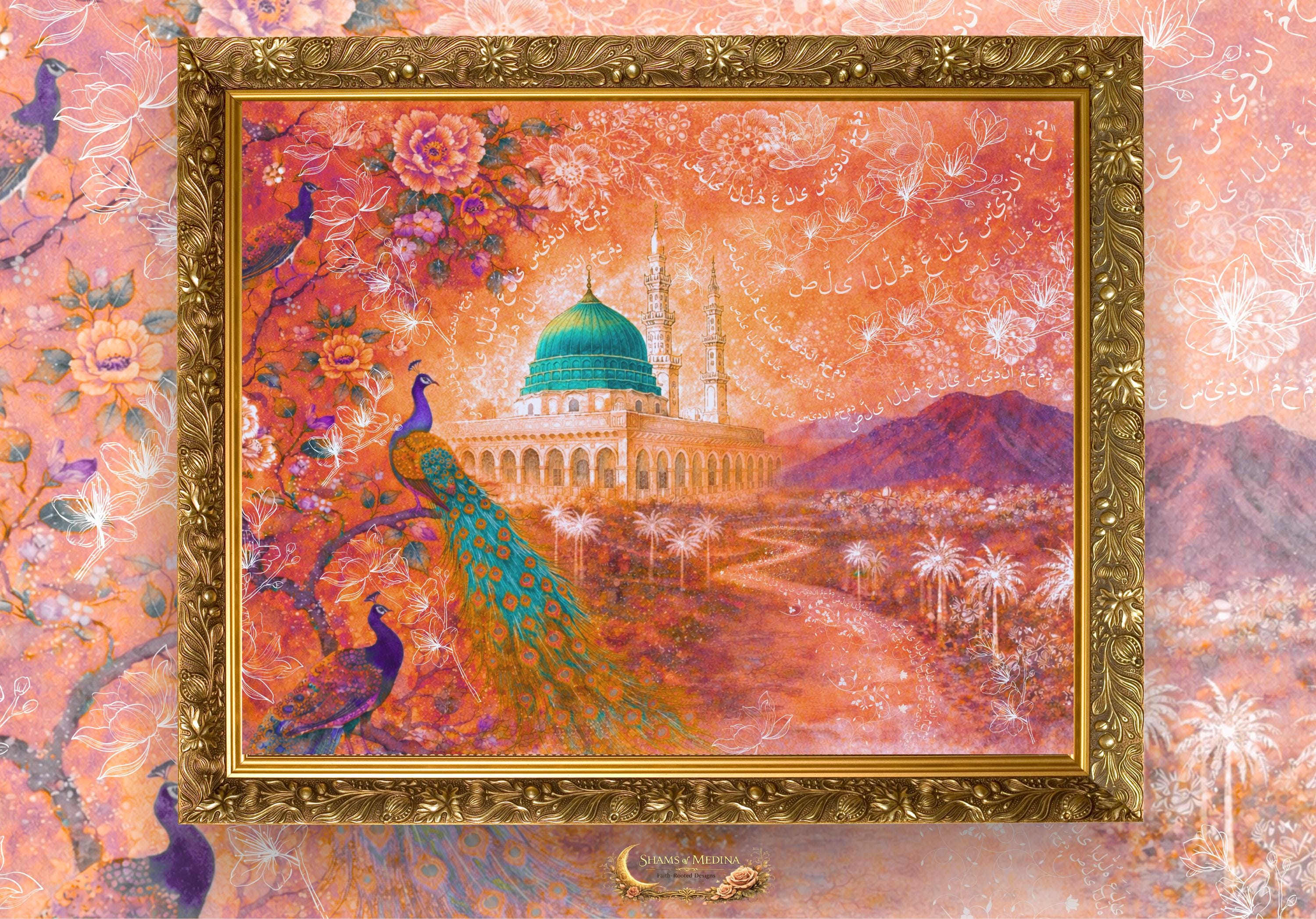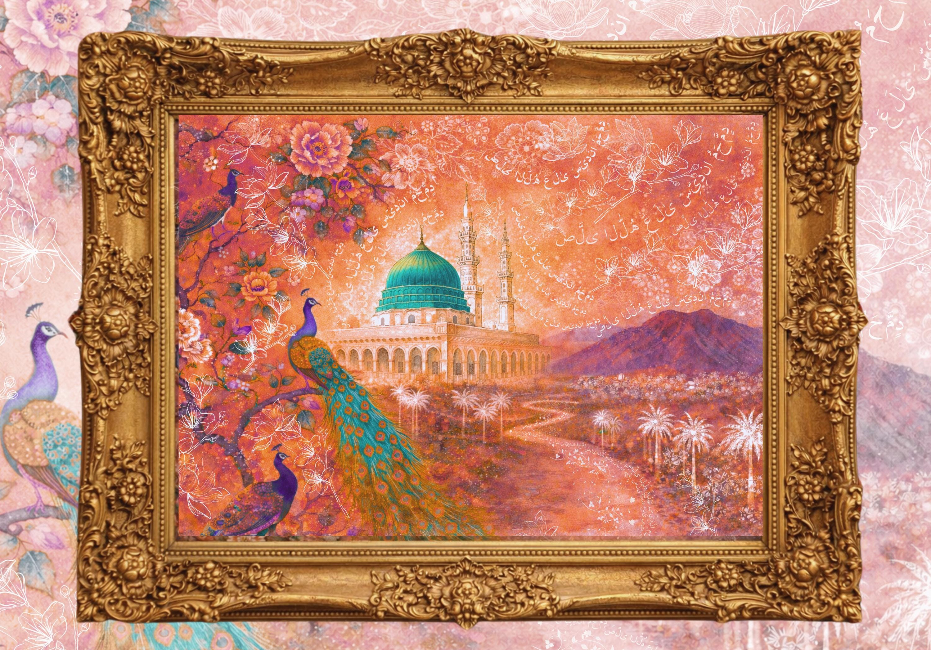 Medina Salawat, Arabic Calligraphy Islamic Wall Art, Hand Painted, Watercolor Masjid Nabawi