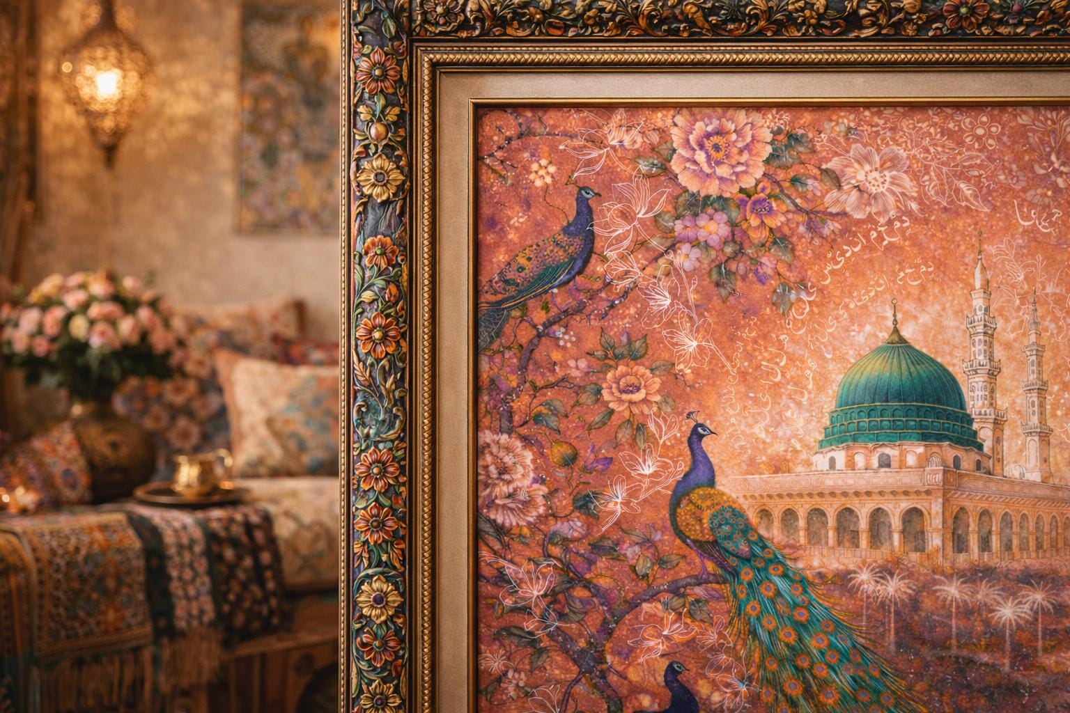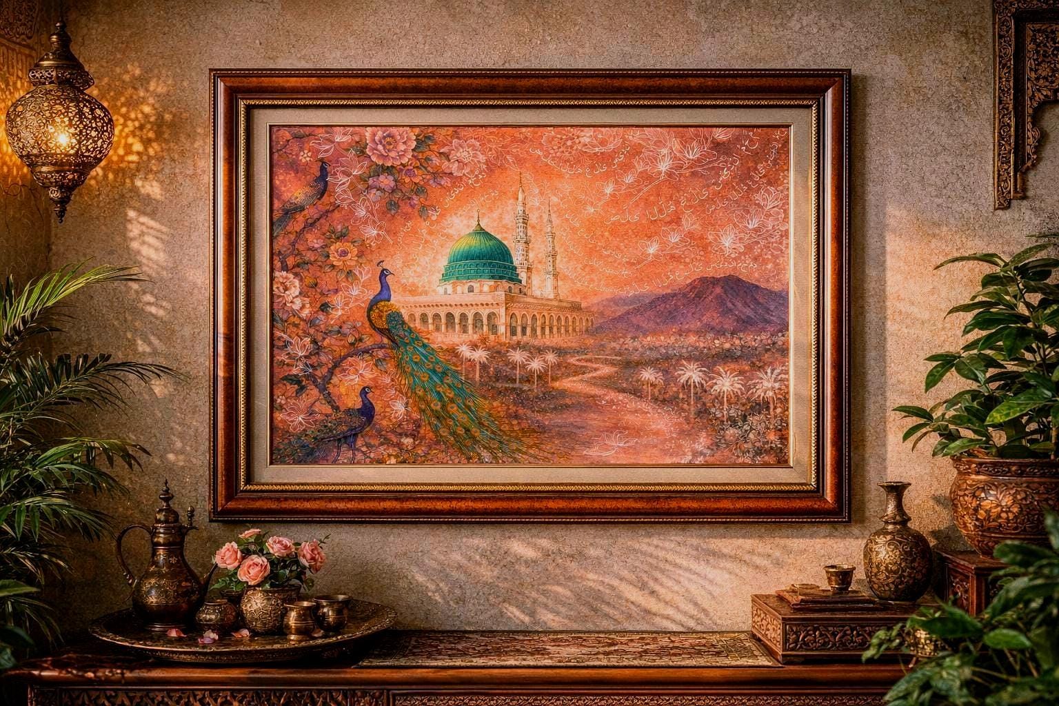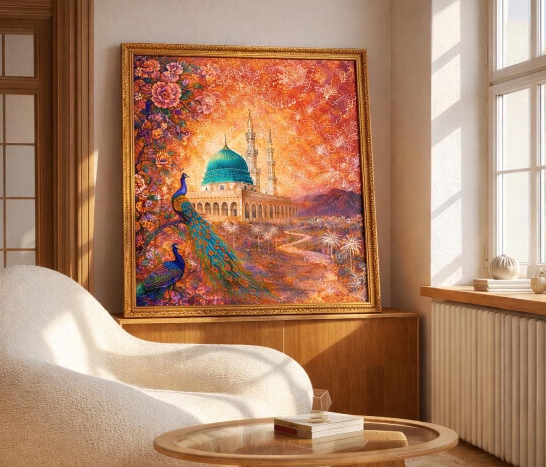 Medina Salawat, Arabic Calligraphy Islamic Wall Art, Hand Painted, Watercolor Masjid Nabawi
