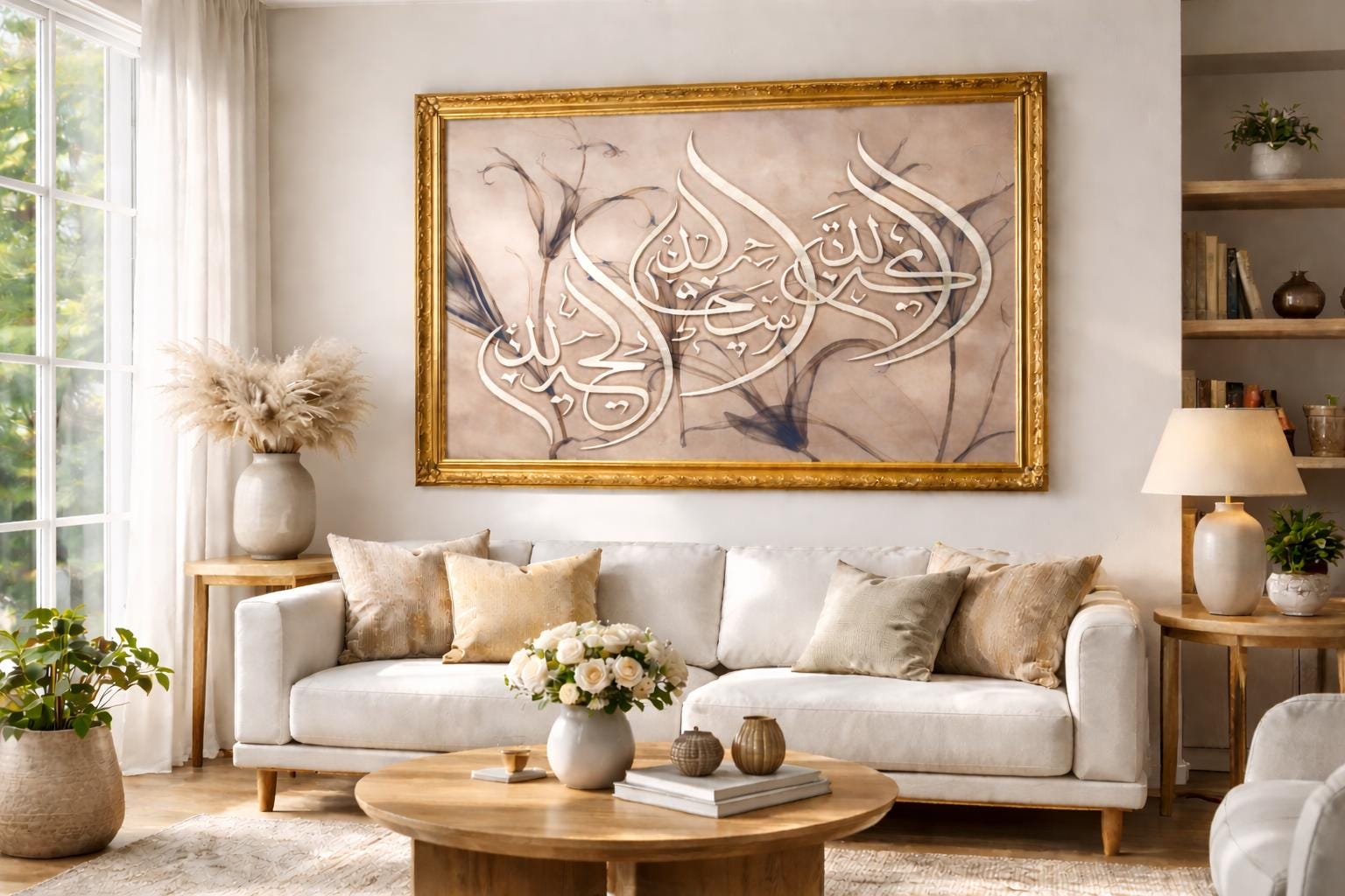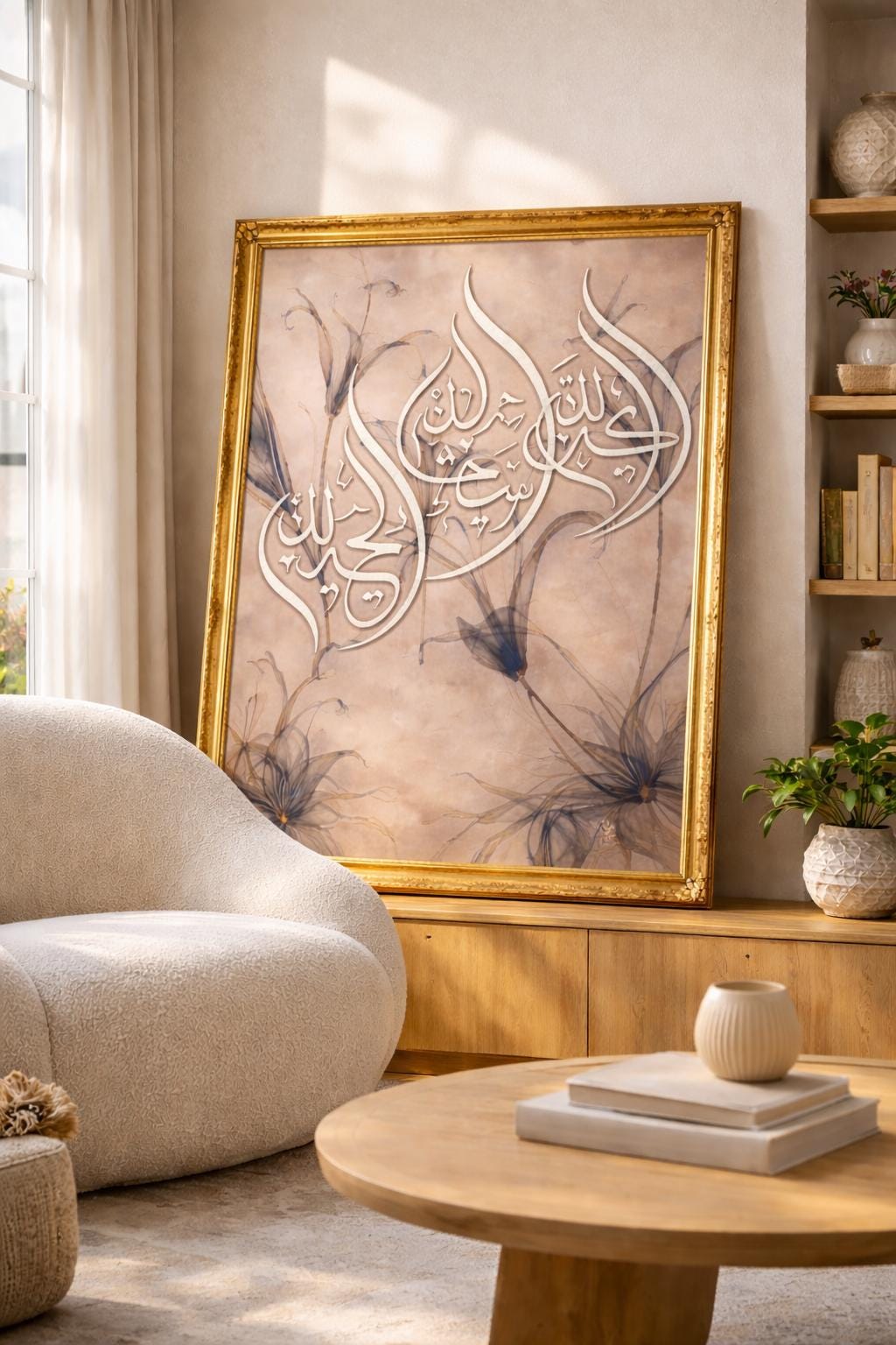Featuring SubhanAllah, Alhamdulillah, and Allahu Akbar in an elegant Arabic calligraphy composition, this piece was created to make your space feel anchored in dhikr, beauty, and peace.