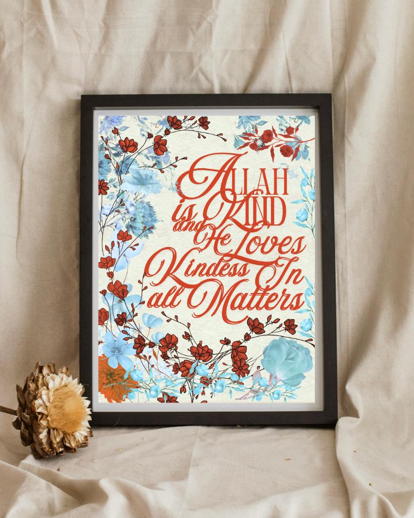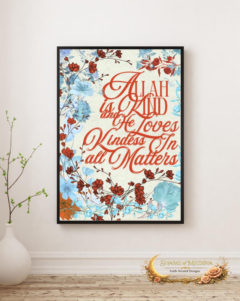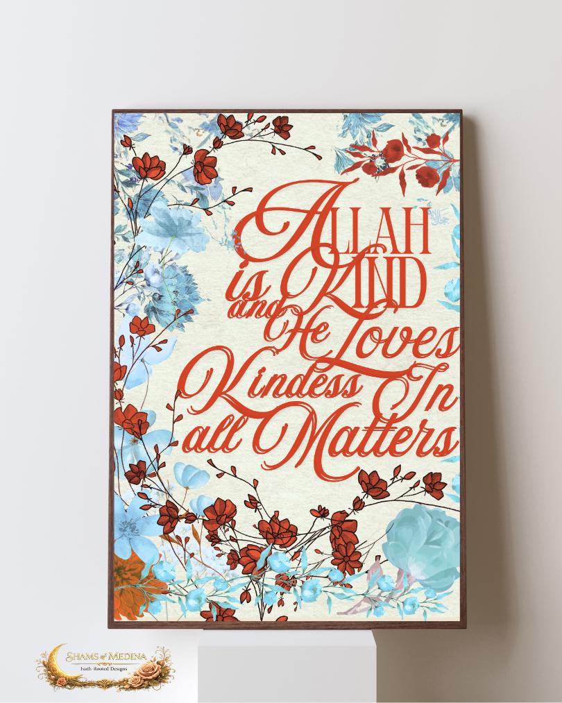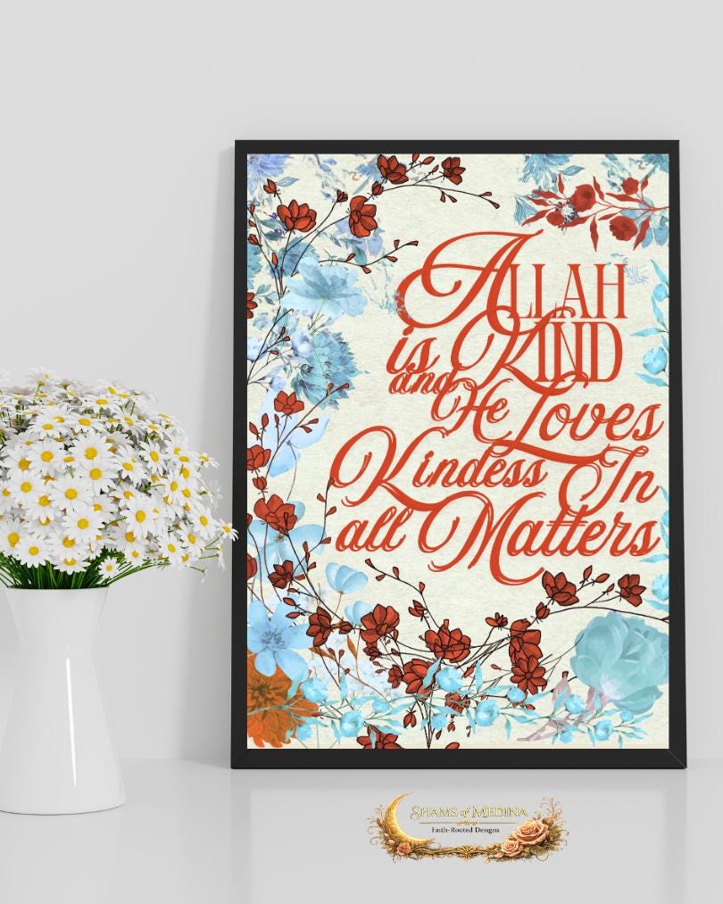 Allah Is Kind Art Poster, Islamic Quote Print, Vintage Floral Pop Art (digital download)