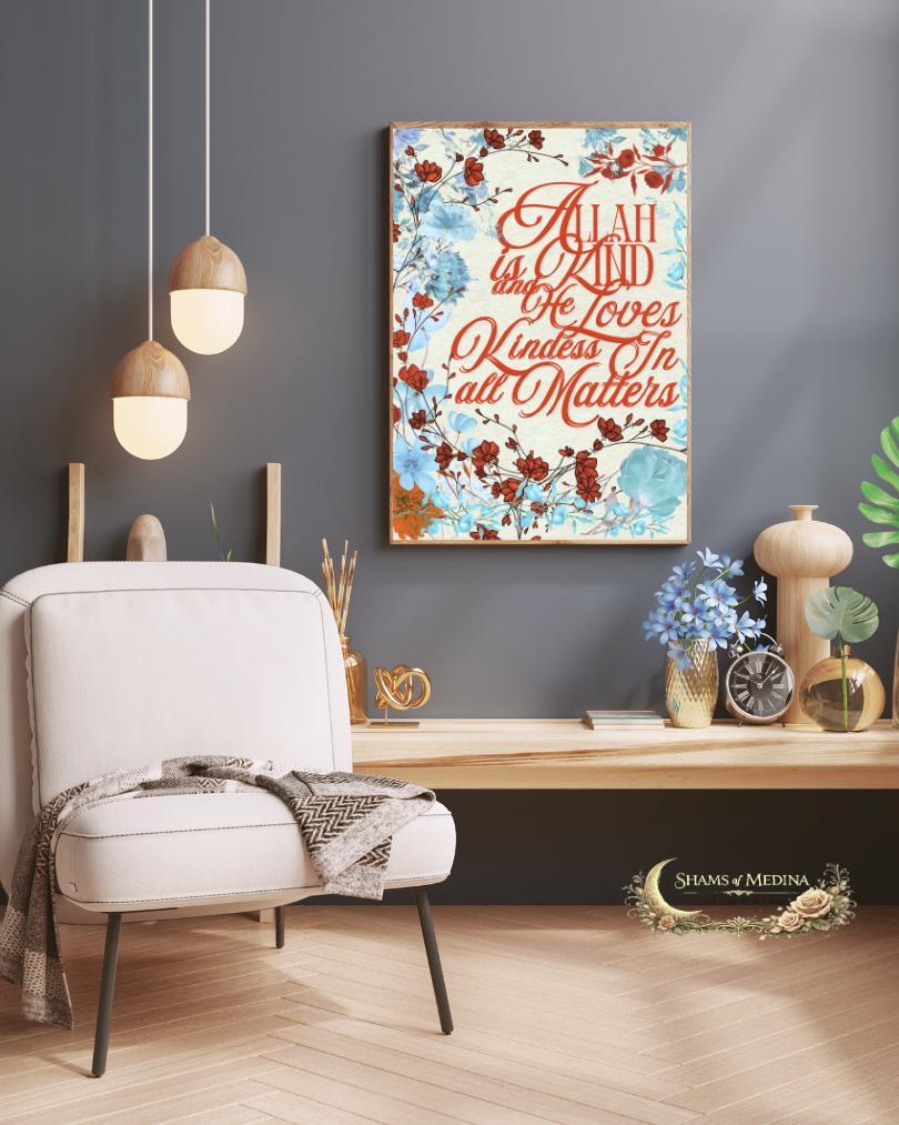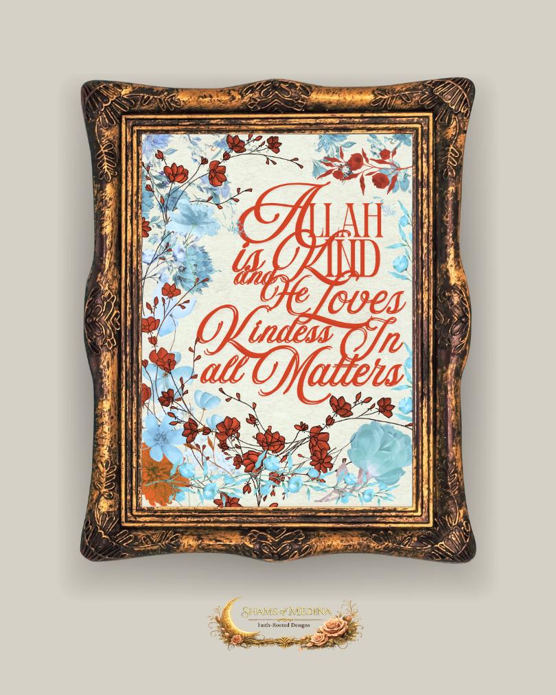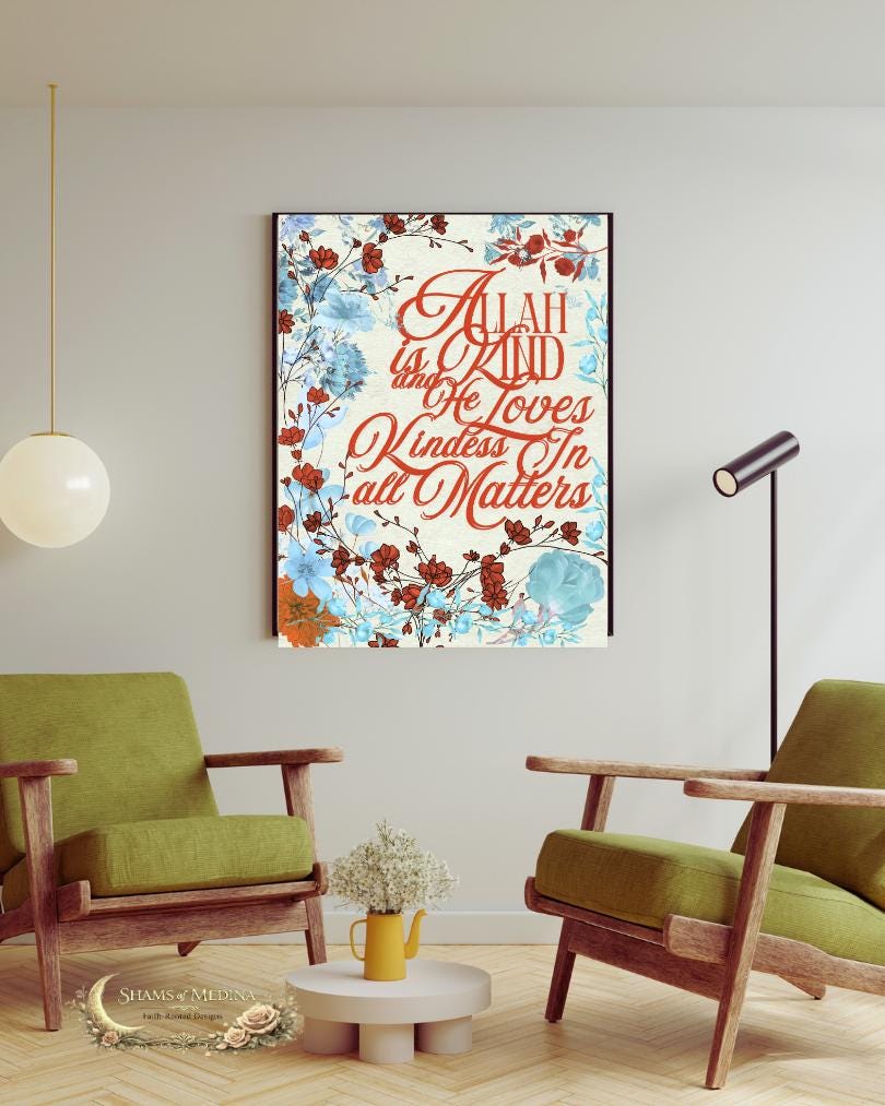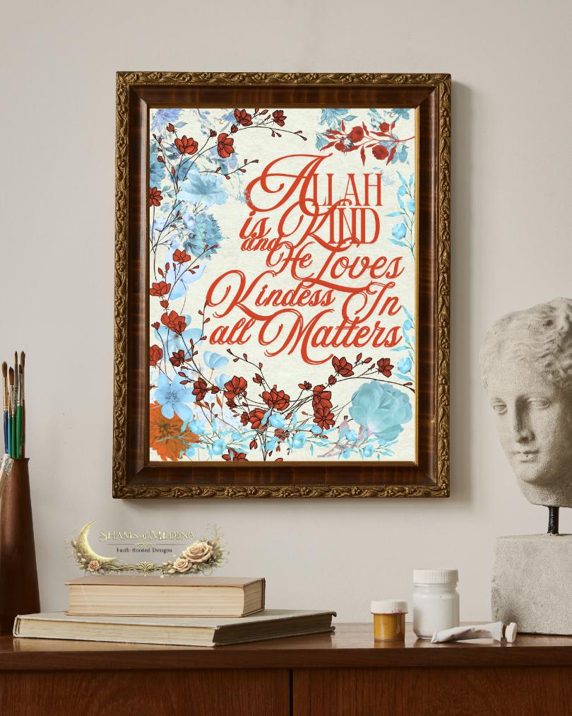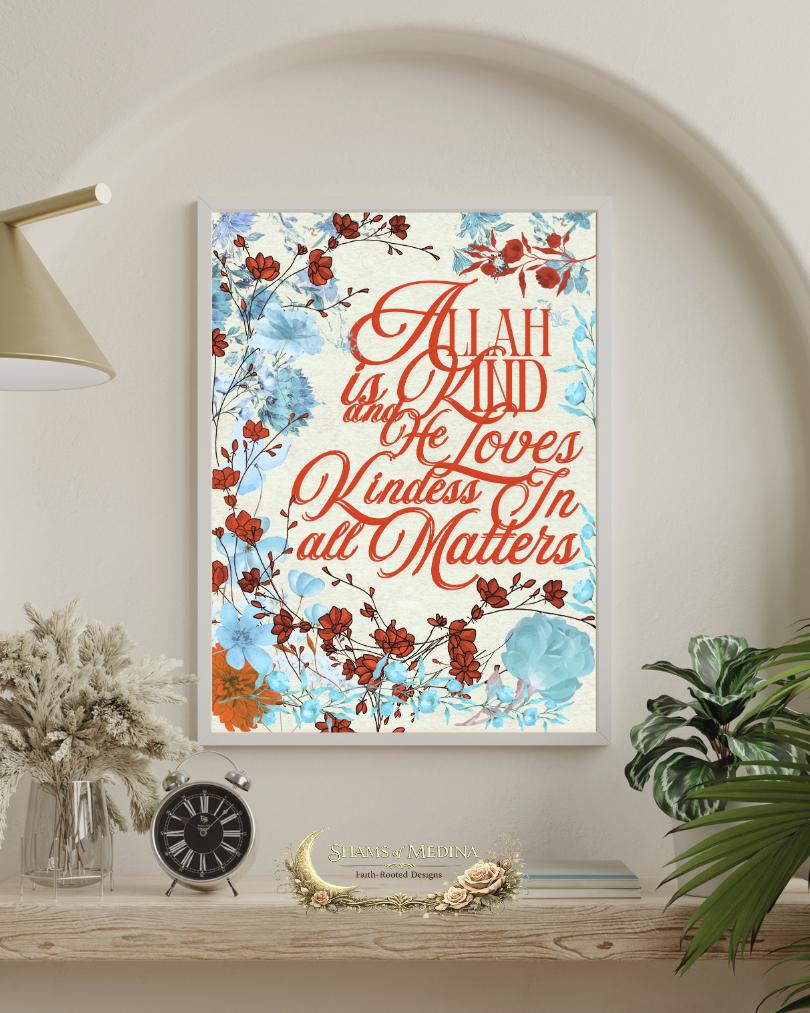 Allah Is Kind Art Poster, Islamic Quote Print, Vintage Floral Pop Art (digital download)