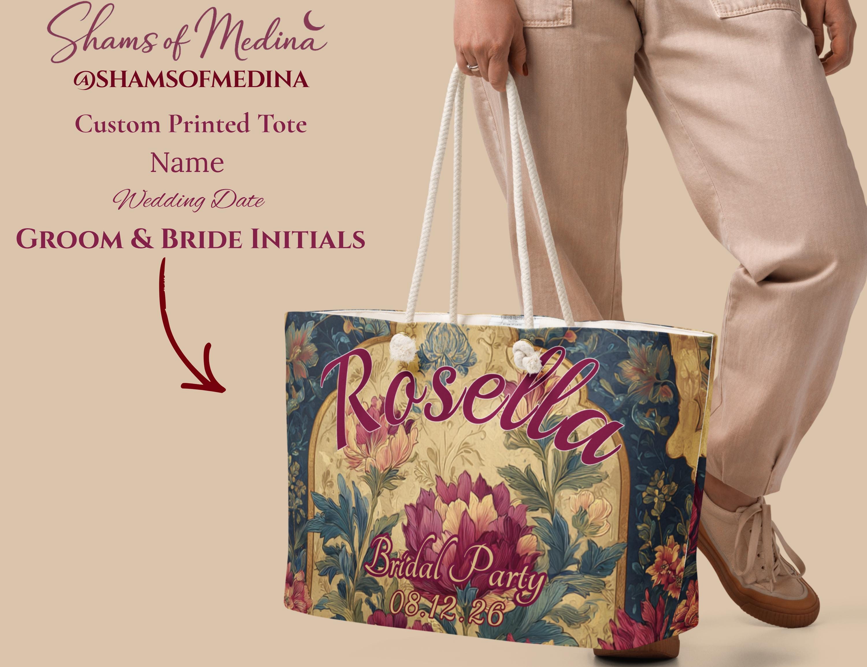 Custom bridal party tote bag, personalized bridesmaid bag, wedding tote, bridal shower gift, bachelorette weekender bag, custom name and date tote, oversized bridal party bag.