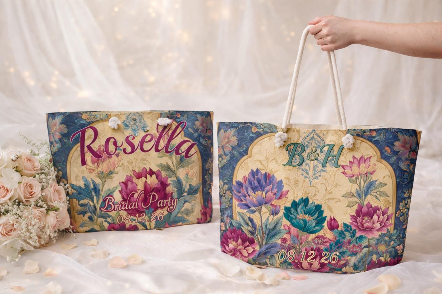 This personalized bag is a lovely choice for bridesmaid gifts, bridal party favors, custom wedding totes, bridal shower gifts, and bachelorette party bags. It is both practical for the event and meaningful as a keepsake long after the celebration is over.