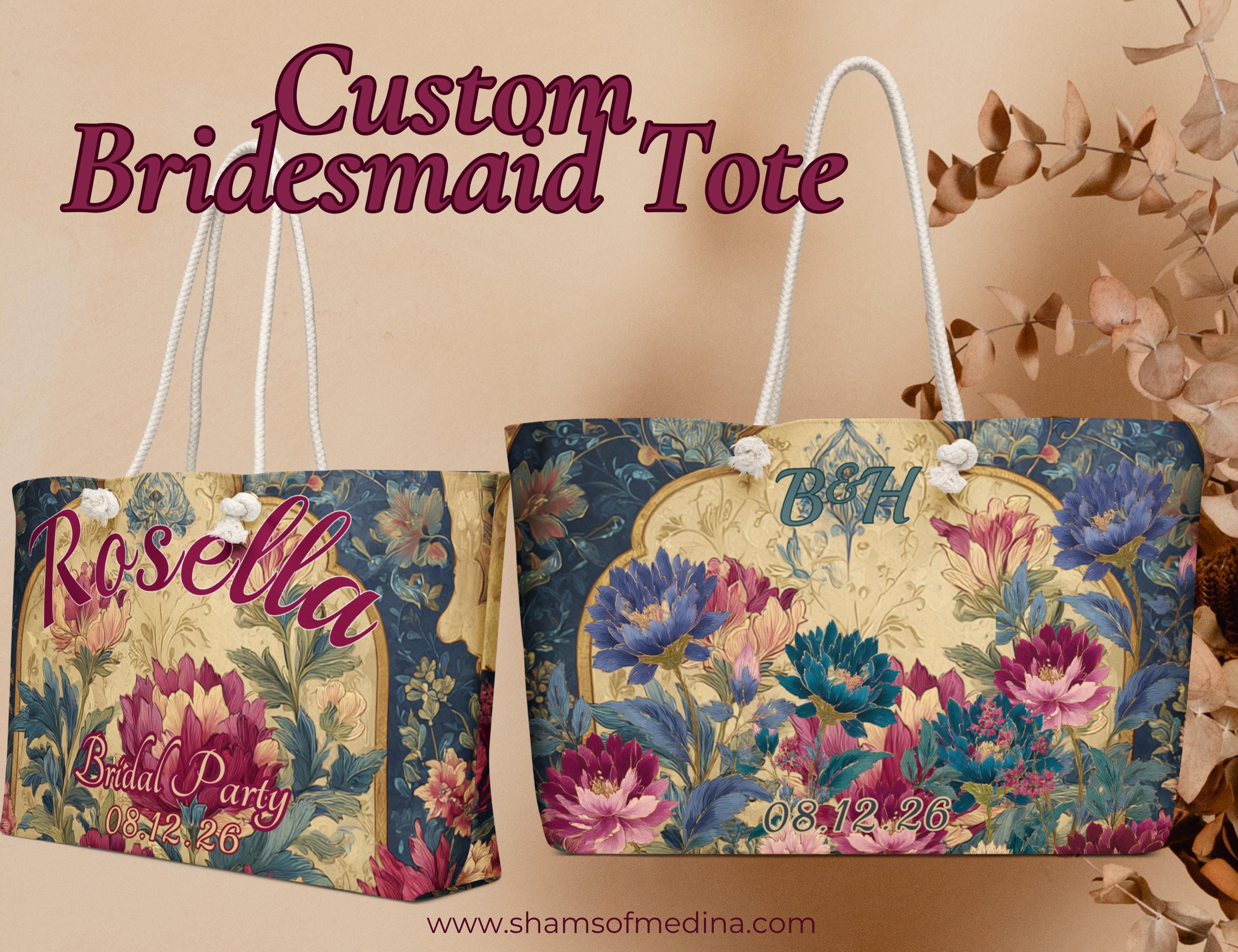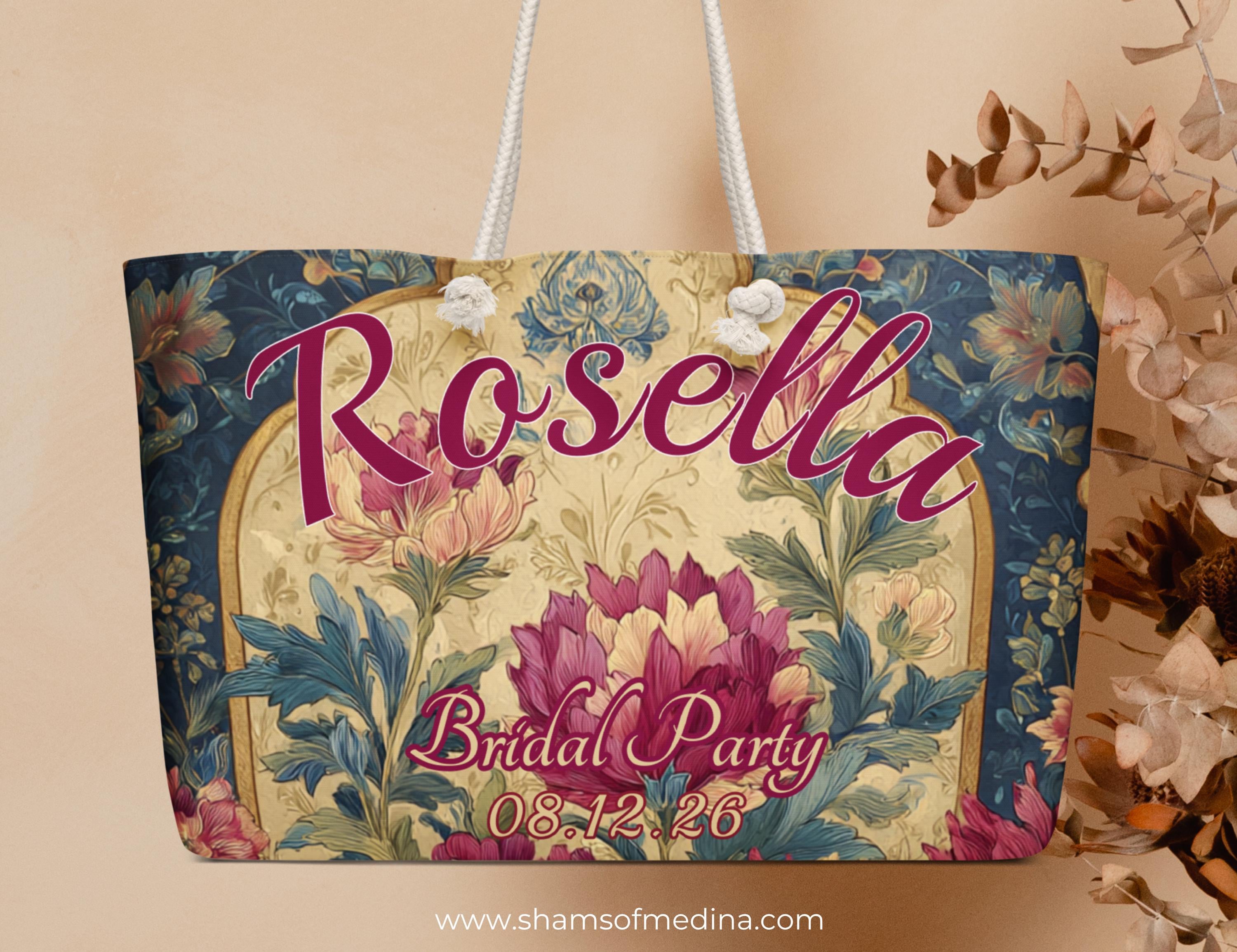 Custom Bridal Party Tote Bag, Bridesmaid Weekender Bag, Personalized Wedding Tote, Bridal Shower Gift, Bachelorette Tote, Name Date Bag